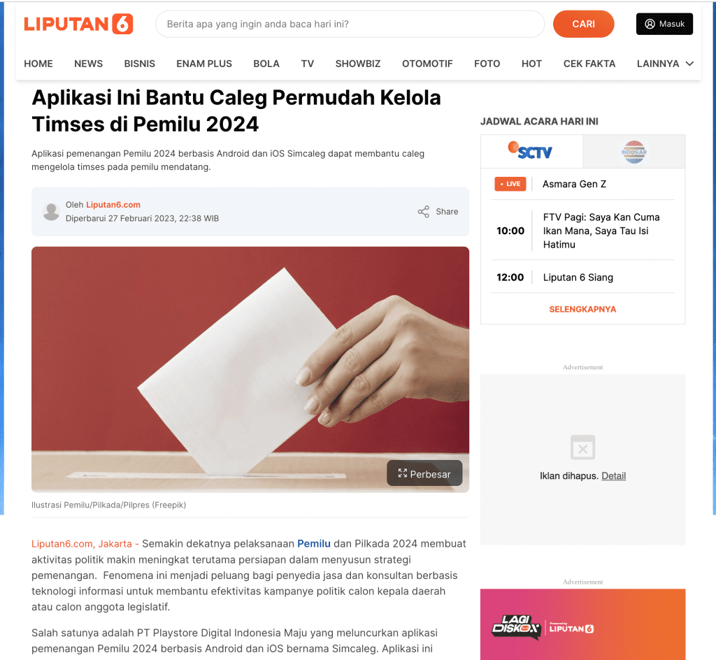 Fitur AI simcaleg memberikan informasi mulai dari strategi kampanye hingga narasi narasi politik yang bisa digunakan oleh kandidat dalam proses kampanye berdasarkan geopolitik dalam suatu wilayah
