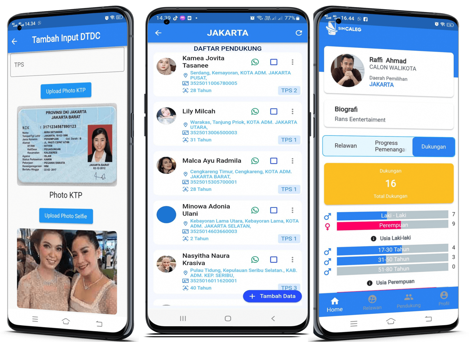 Manajemen data Relawan secara terstruktur hingga TPS yang mudah dilakukan secara terintegrasi.sehingga memudahkan membangun dan mengukur kinerja Team pemenangan